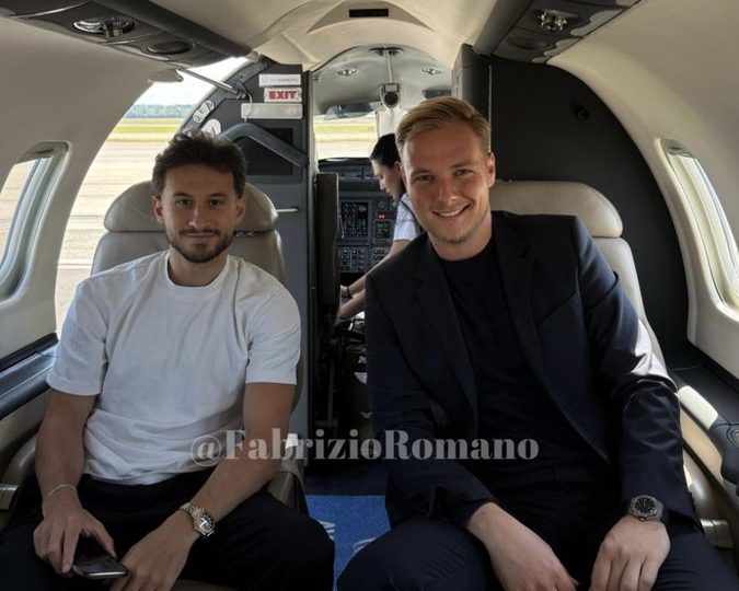 Fabrizio Romano ha postato la foto che ritrae il calciatore che arriverà dal Celtic per il 19 milioni di euro assieme al suo agente sul volo che lo porterà verso la nuova destinazione.