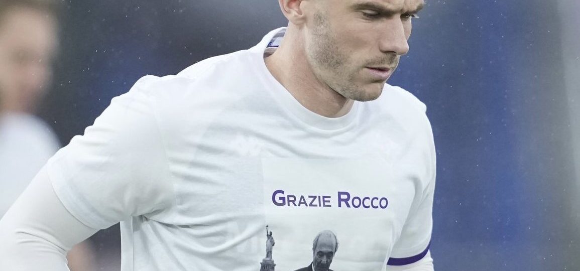 La Fiorentina – riporta TMW – ha preparato una maglia celebrativa per le fasi di riscaldamento al Dall’Ara. Nella casacca, a sfondo bianco, davanti viene mostrata una foto del presidente Commisso che palleggia con un pallone e con la skyline di New York sullo sfondo, con la scritta “Grazie Rocco”. Dietro c’è la scritta “Rocco” nello spazio solitamente destinato al nome del calciatore, con subito sotto il numero “1” a campeggiare e a ricordare lo status nel club del compianto Commisso.