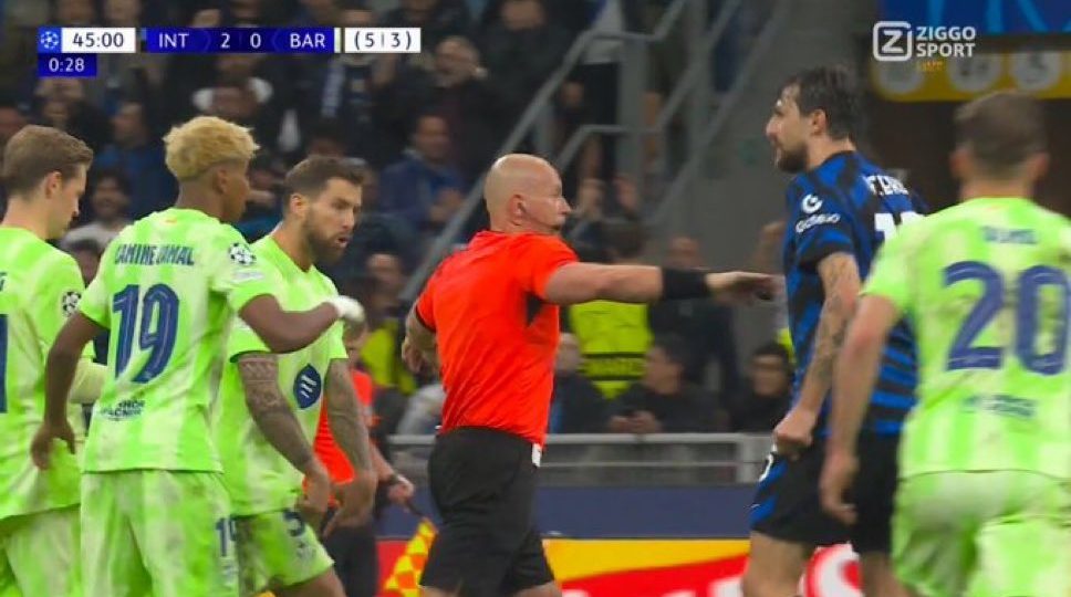 Attimi di tensione durante la semifinale di ritorno di Champions League fra Inter e Barcellona. Al minuto 45′, dopo il 2-0 siglato da Calhanoglu direttamente dal dischetto, si è scatenato un parapiglio con protagonisti Acerbi e Inigo Martinez. I due difensori si sono beccati dopo la rete del turco, proseguendo anche dopo il duplice fischio di Marciniak.