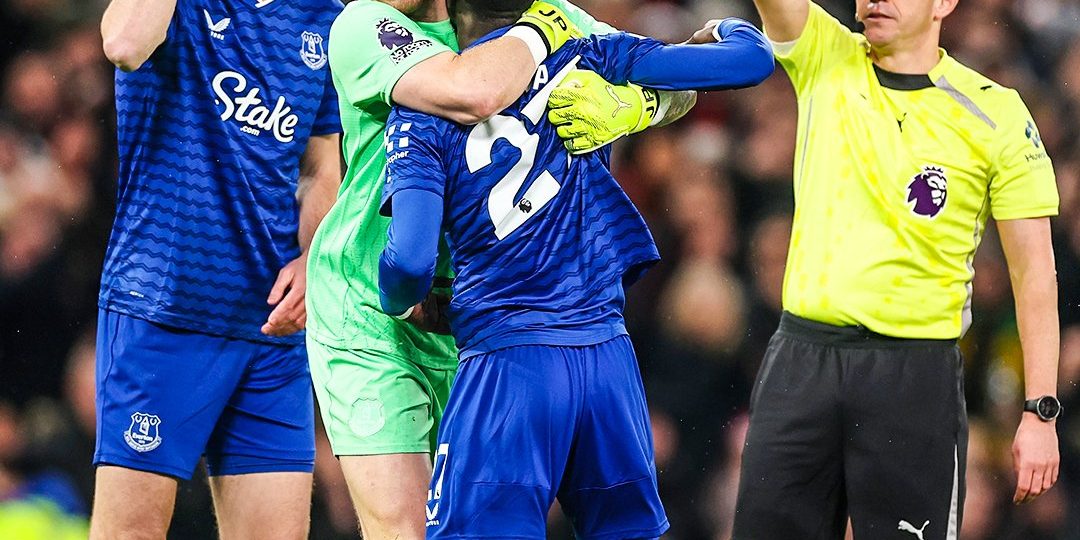 Idrissa Gueye appeared to slap his own teammate Michael Keane and is sent off because of it.