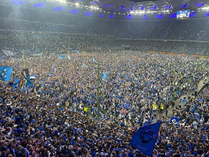 Grande festa al Volksparkstadium per i tifosi, che aspettavano a lungo questo momento. Le immagini parlano da sole: invasione di campo degli spettatori e festeggiamenti che sono appena iniziati e che proseguiranno ancora a lungo. Manca solo una partita al termine della stagione nella seconda serie della Germania e sarà fondamentale per vincere il titolo, con il Colonia secondo a -1.