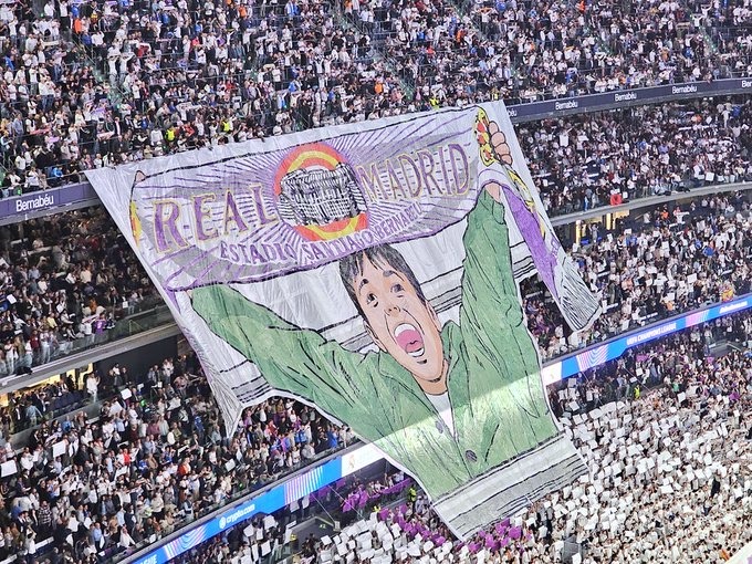 Prima del calcio d’inizio della sfida fra Real Madrid e Juventus, i tifosi Blancos hanno omaggiato l’ex Lucas Vazquez con una coreografia spettacolare: l’immagine di un bambino che mostra con orgoglio la sciarpa con la scritta “Hala Madrid”.