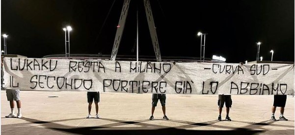 “Lukaku resta a Milano, il secondo portiere già lo abbiamo”. Uno striscione ironico che fa riferimento agli episodi sfortunati in cui Lukaku si è ritrovato a “parare” tiri di suoi compagni di squadra in finale di Champions col Manchester City ma anche in altri precedenti. Oltre allo striscione, un messaggio allegato molto chiaro: “Noi non dimentichiamo quanto accaduto, Lukaku qui non sarai mai il benvenuto”.